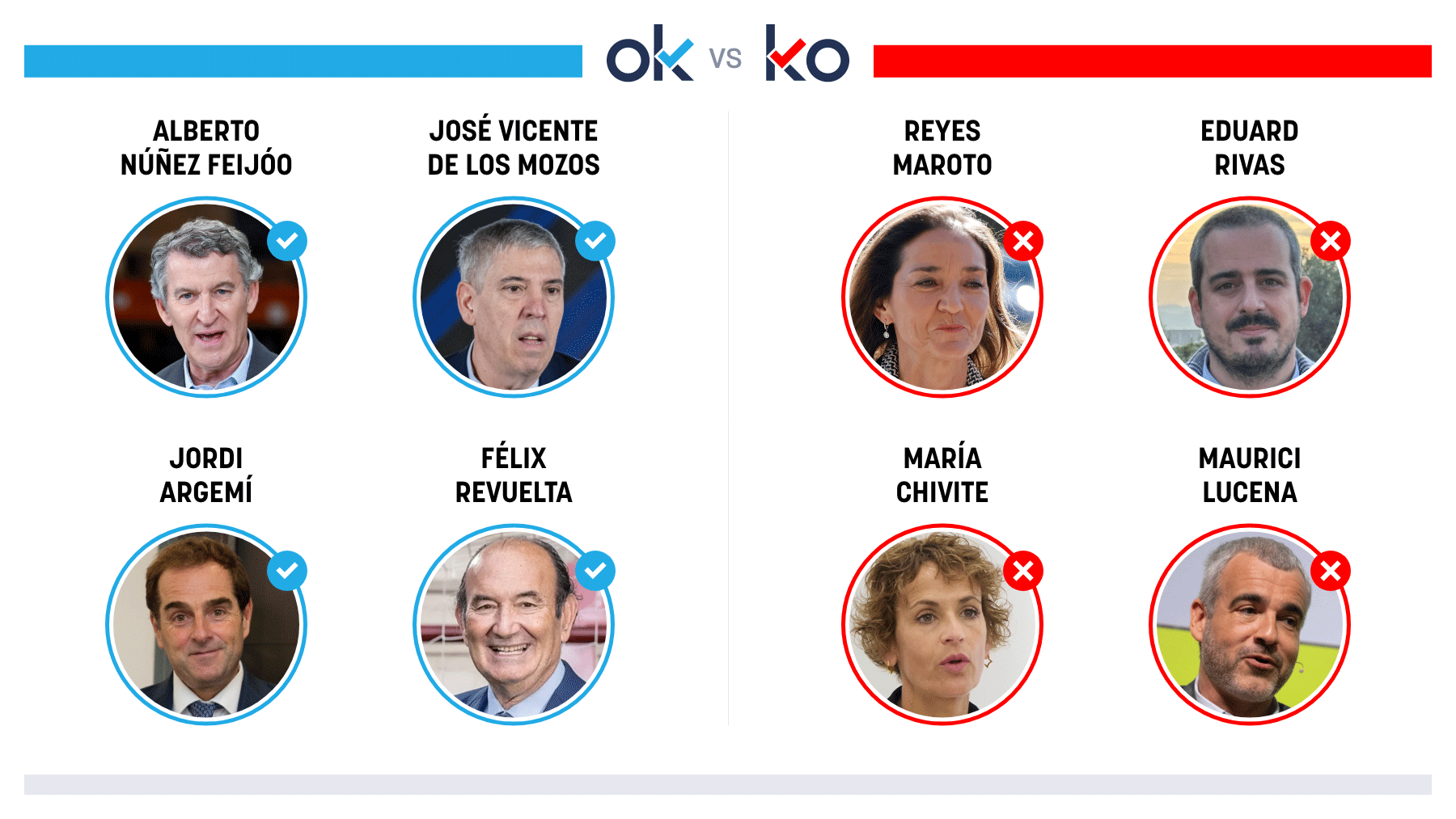OK: Alberto Núñez Feijóo Porque ha presentado un plan para recuperar las estructuras tras el deterioro del sanchismo. OK: José Vicente de los Mozos Porque Indra se ha afianzado como gigante europeo de defensa y apunta a 2.000 millones en fondos comunitarios. OK: Jordi Argemí Porque será el nuev...