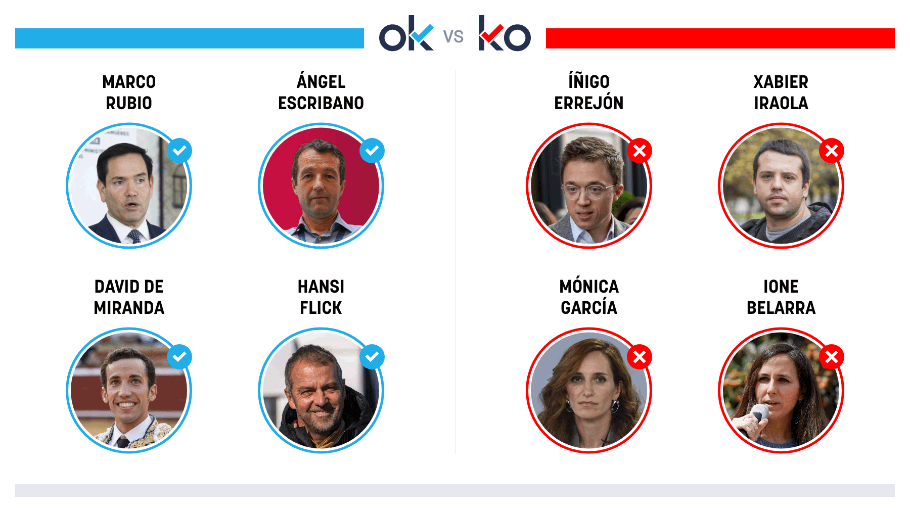 OK: Marco Rubio Por elaborar un plan en tres fases para consolidar la transformación política en Venezuela. OK: Ángel Escribano Porque Indra se ha disparado otro 7% en Bolsa hasta máximos históricos y supera los 10.000 millones de capitalización. OK: David de Miranda Por el gran triunfo del die...