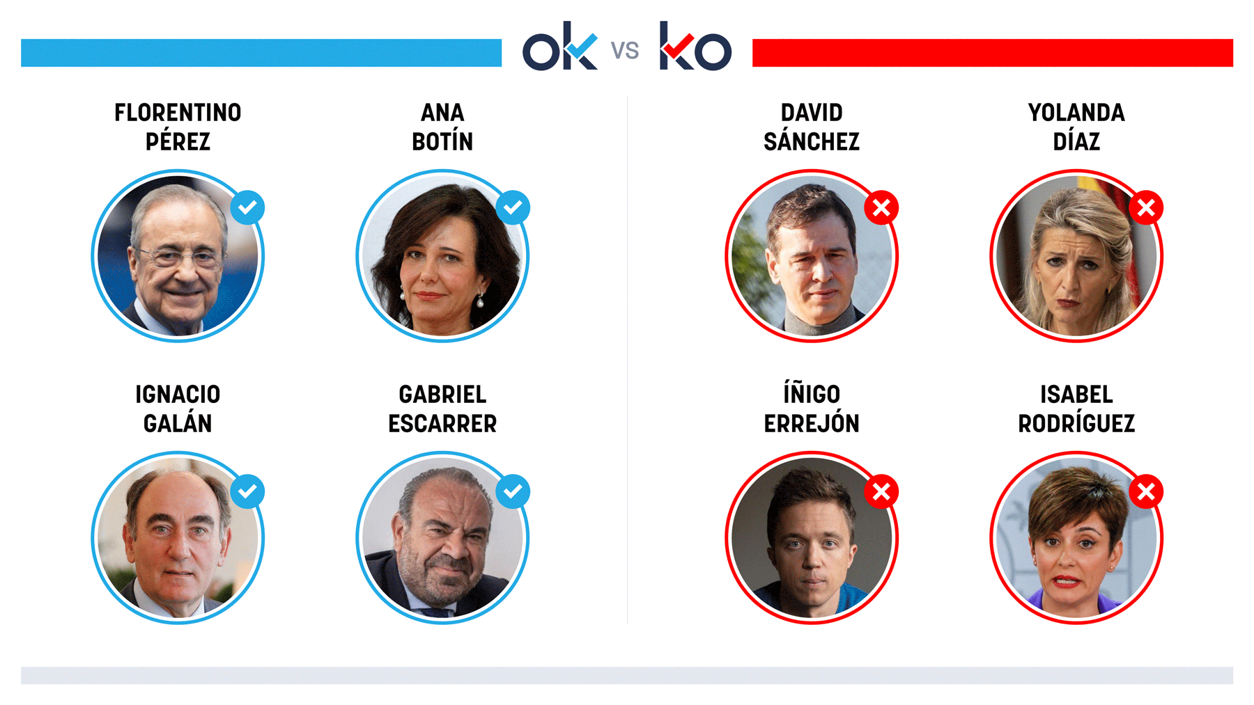 OK: Florentino Pérez Porque ACS ganó 950 millones en 2025 tras elevar un 20% sus ventas y disparar el Ebitda. OK: Ana Botín Porque el plan estratégico de Santander prevé ganar más de 20.000 millones en 2028 y duplicar el dividendo. OK: Ignacio Galán Porque Iberdrola ha logrado ganancias récord...