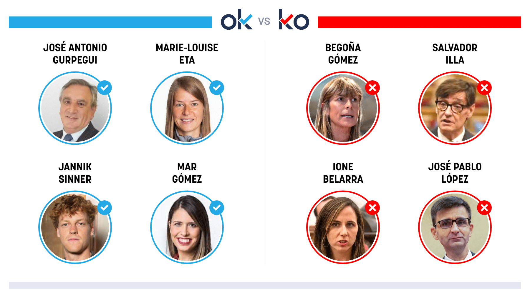 OK: José Antonio Gurpegui Por su acertada advertencia: «Europa no necesita que nadie la derrote, se derrotará ella misma, desde dentro». OK: Marie-Louise Eta Por hacer historia al convertirse en entrenadora del equipo de fútbol masculino Union Berlin, de la Bundesliga. OK: Jannik Sinner Por adj...