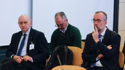El exministro Jorge Fernández Díaz, su otrora secretario de Estado, Francisco Martínez, y el excomisario Villarejo, los tres principales acusados del banquillo....