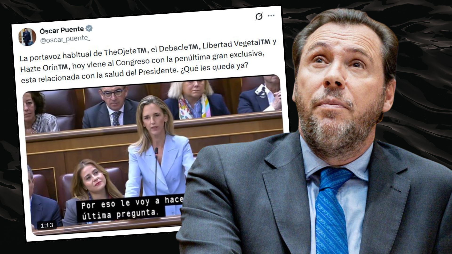 El ministro se mofa de Cayetana Álvarez de Toledo, a quien califica como "portavoz habitual" de medios como The Objective, El Debate, Libertad Digital y Hazte Oír, pero deformando sus nombres de manera despectiva...