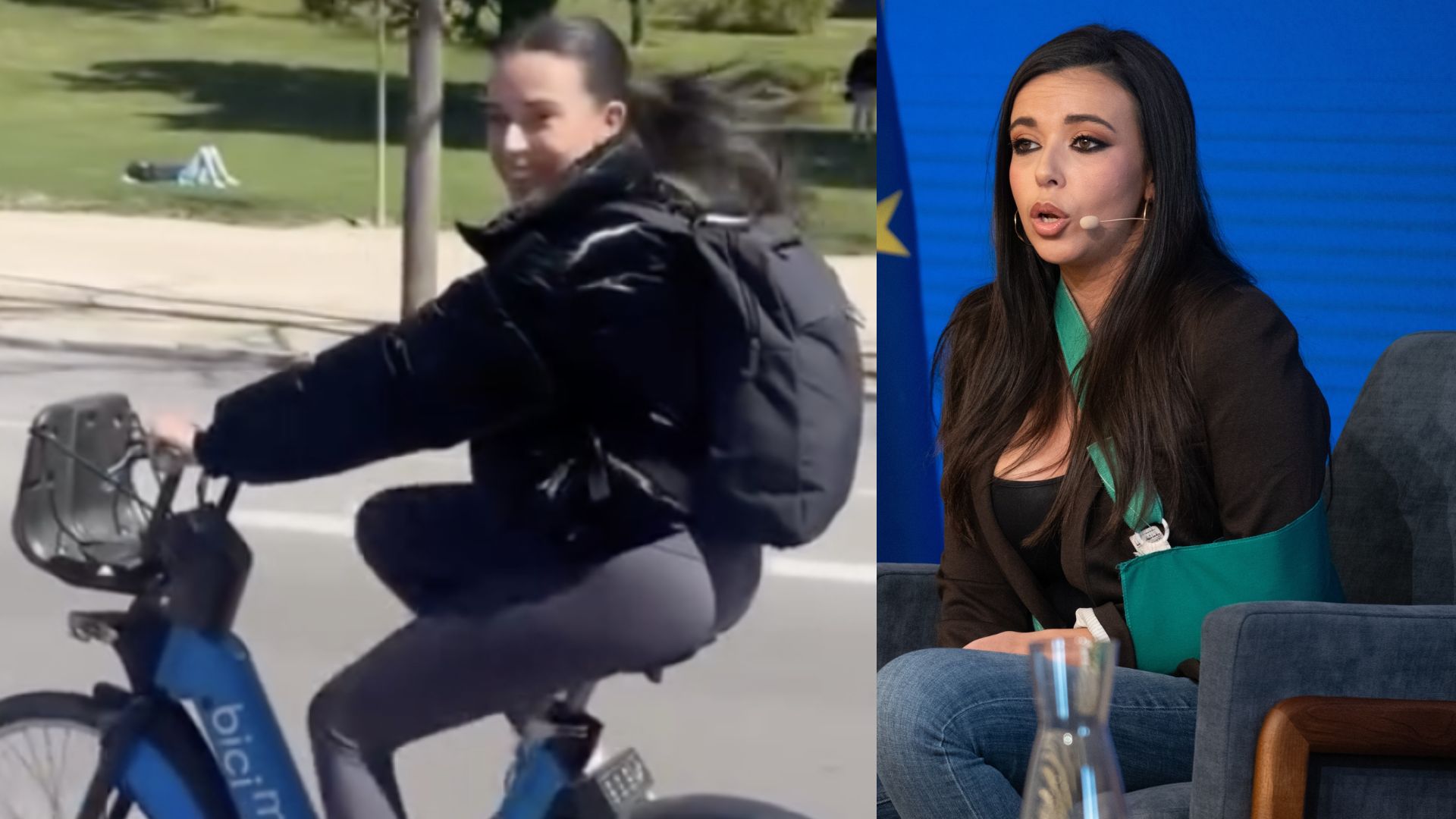 Sarah Santaolalla se salta a la torera la ley y hace el payaso encima de una bici
