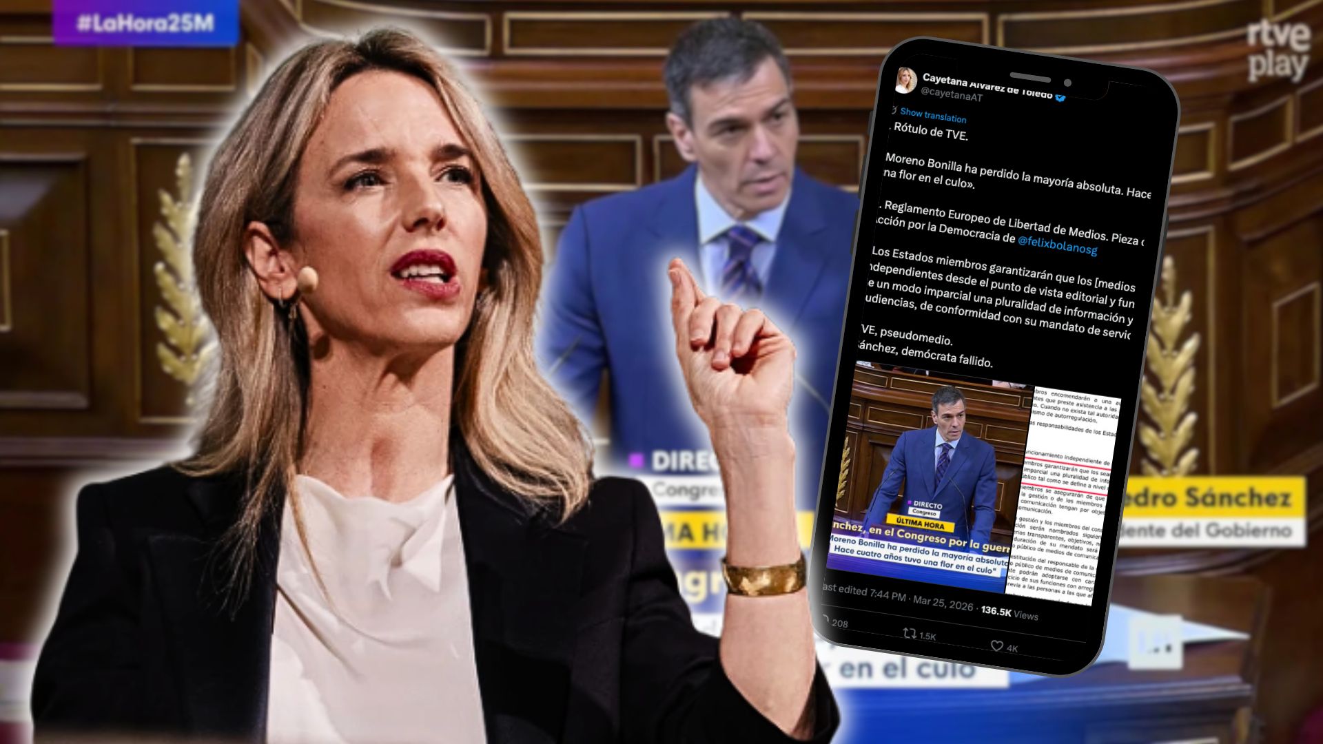 Cayetana atiza a TVE por un penoso rótulo que insulta a Moreno Bonilla: «Pseudomedio»