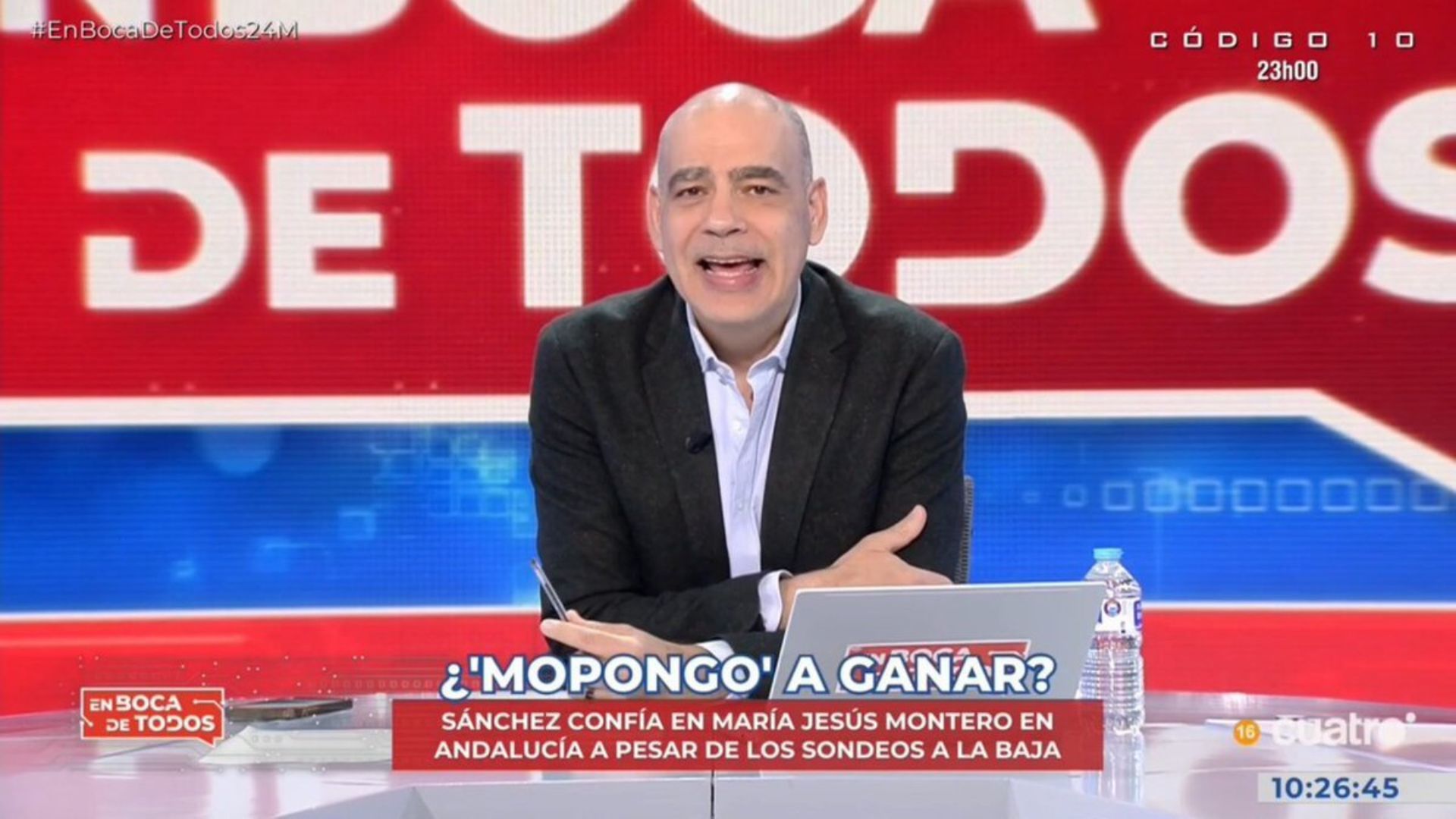 El presentador se burla de la candidata socialista a las elecciones en Andalucía después de halagarse a sí misma...