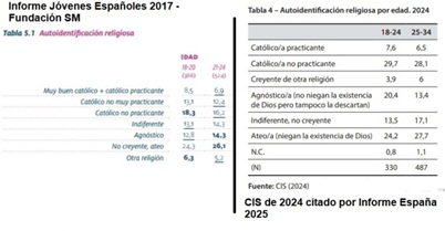 Por José María Arévalo (Comparación del Informe 2017 de Fundación SM y el CIS 2024, las cifras son las misas, pero el CIS, cabe sospechar, trampea a la baja) Una publicación de El País que toca este tema de la moda de la religión en España, le lleva a Religión en Libertad a mencionar otro articulo q...