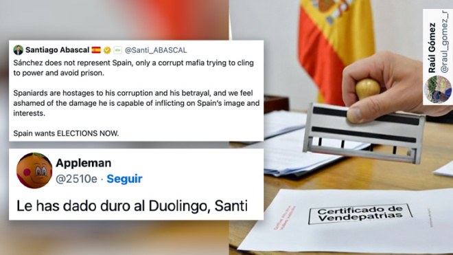 Abascal tuitea en inglés para atacar a Sánchez y las redes le responden: "Certificado de vendepatrias"