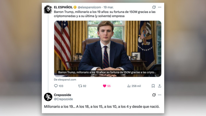 Cachondeo con un artículo sobre el éxito de Barron Trump, "millonario a los 19 años": "Yo trabajé con él en la vendimia. Todos sabíamos que llegaría lejos"