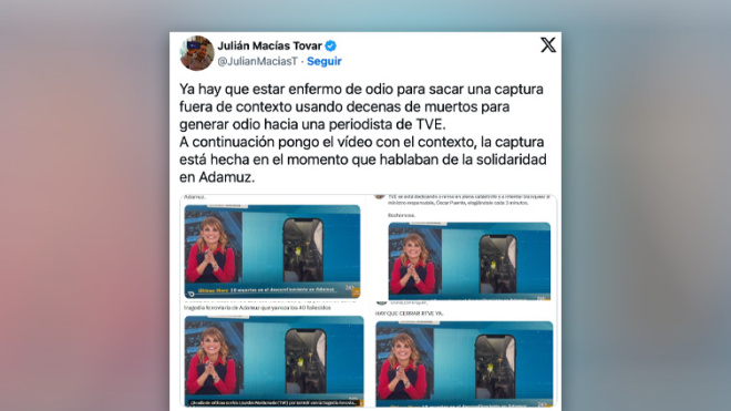 Cuando se trata de criticar a TVE y a sus periodistas o colaboradores, la fachosfera hispana parece tenerlo muy claro: lo más importante es la cantidad y lo de menos es que tenga algún atisbo de realidad. Después de los ataques a Xabier Fortes y a su hijo, a Sarah Santaolalla, a Laura Arroyo o a Je...