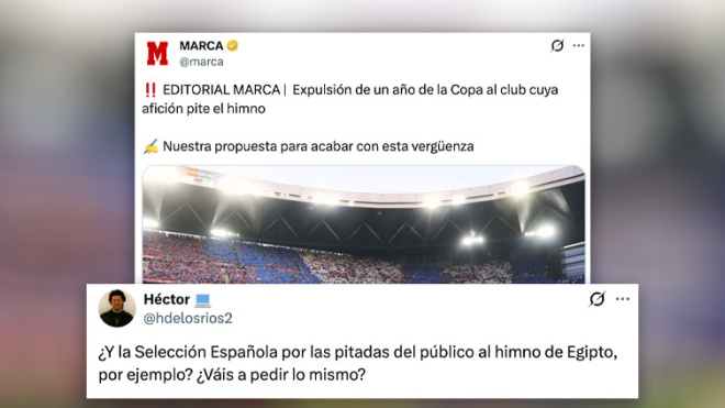 El diario 'Marca' pide expulsar de la Copa a los clubs cuya afición pite el himno y desata las críticas: "¿Para los símbolos nazis tenéis alguna propuesta?"