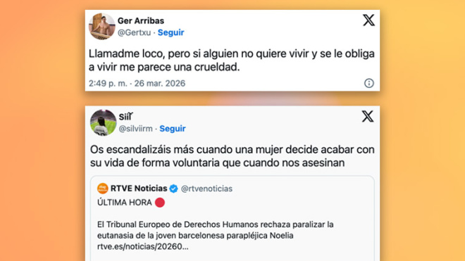 Los tuiteros responden al ruido ultra tras la eutanasia de Noelia: "Todo el día con la palabra libertad hasta que alguien elige algo no os gusta" 27 mar 2026, 11:07 ... Redirecting to full article...