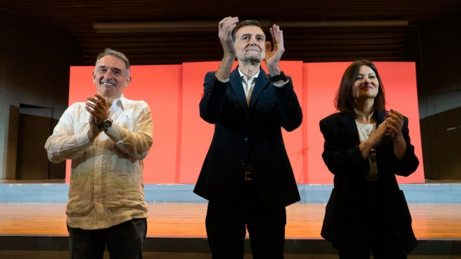 A galopar, a galopar, hasta enterrarlos en el mar. Al compás de los versos de Rafal Alberti y la voz de Paco Ibáñez entraban al auditorio de la UGT en Madrid Enrique Santiago, secretario general del Partido Comunista de España; Sira Rego, ministra de Juventud e Infancia, y Antonio Maíllo, coordinado...