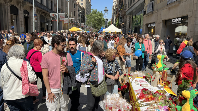Sant Jordi florece un año más en las calles de Barcelona: "Es todo un país que se levanta"