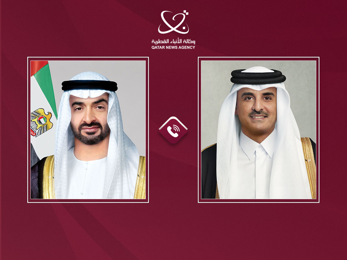 الدوحة في 01 يناير /قنا/ ناقش حضرة صاحب السمو الشيخ تميم بن حمد آل ثاني أمير البلاد المفدى، مع أخيه صاحب السمو الشيخ محمد بن زايد آل نهيان رئيس دولة الإمارات العربية المتحدة الشقيقة، آخر مستجدات الأوضاع على الساحتين الإقليمية والدولية. جاء ذلك خلال اتصال هاتفي أجراه سمو الأمير المفدى اليوم مع رئيس...