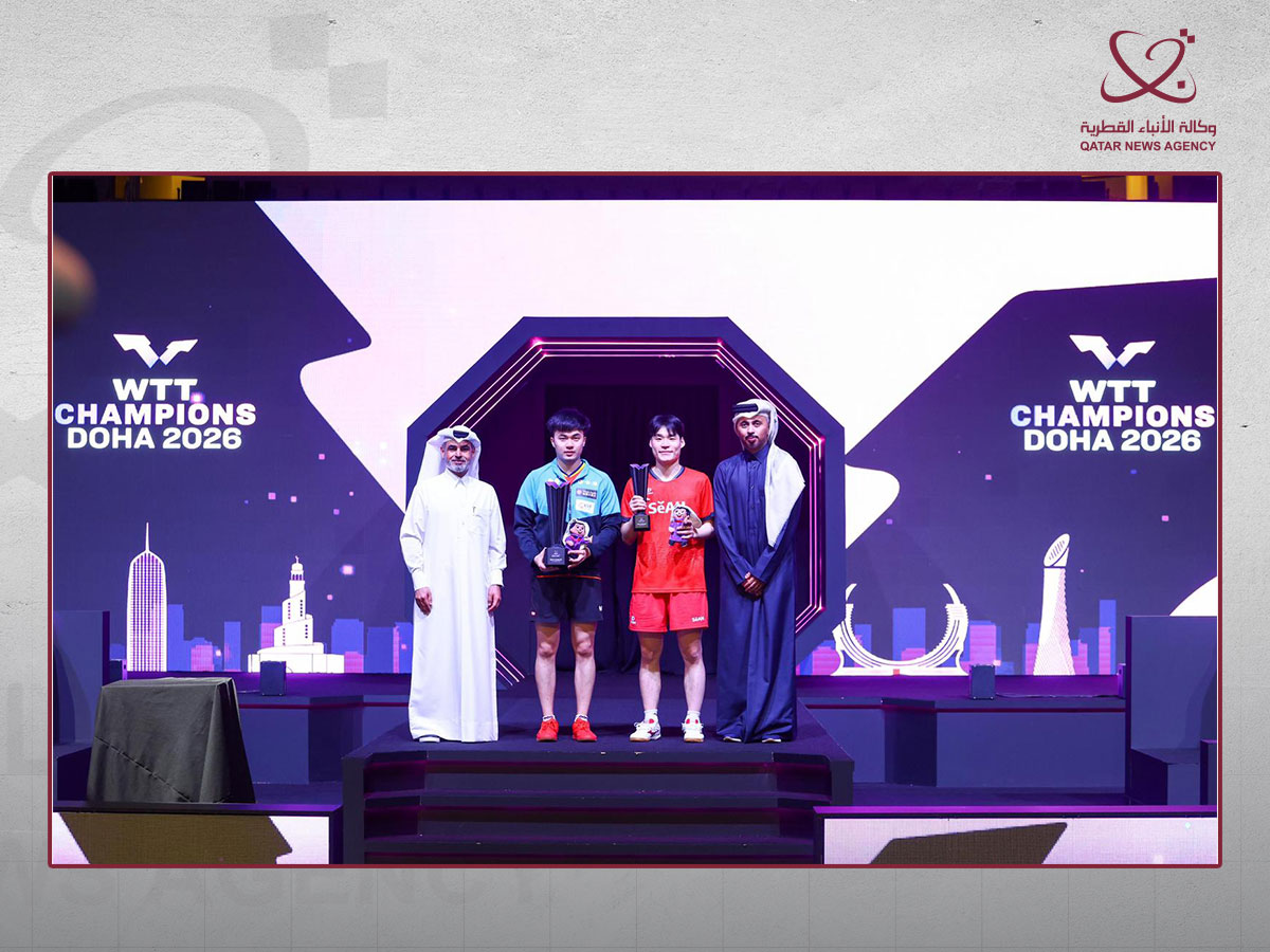 الدوحة في 11 يناير /قنا/ أسدل الستار مساء اليوم على منافسات بطولة قطر الدولية لكرة الطاولة "WTT Champions Doha 2026" في نسختها الحادية والثلاثين، التي أقيمت على صالة لوسيل الرياضية طيلة 5 أيام، بمشاركة نخبة من أبطال العالم والمصنفين الأوائل ضمت أفضل 32 لاعبا يمثلون 16 دولة وأفضل 32 لاعبة يمثلن 15 دو...