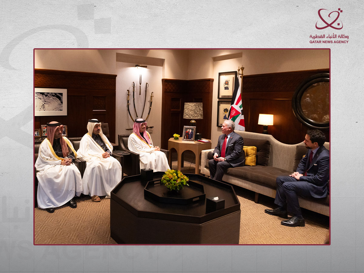 عمان في 18 يناير /قنا/ استقبل جلالة الملك عبدالله الثاني ابن الحسين ملك المملكة الأردنية الهاشمية الشقيقة، اليوم في عمان، معالي الشيخ محمد بن عبدالرحمن بن جاسم آل ثاني رئيس مجلس الوزراء وزير الخارجية. في بداية المقابلة، نقل معالي رئيس مجلس الوزراء وزير الخارجية، تحيات حضرة صاحب السمو الشيخ تميم بن ح...