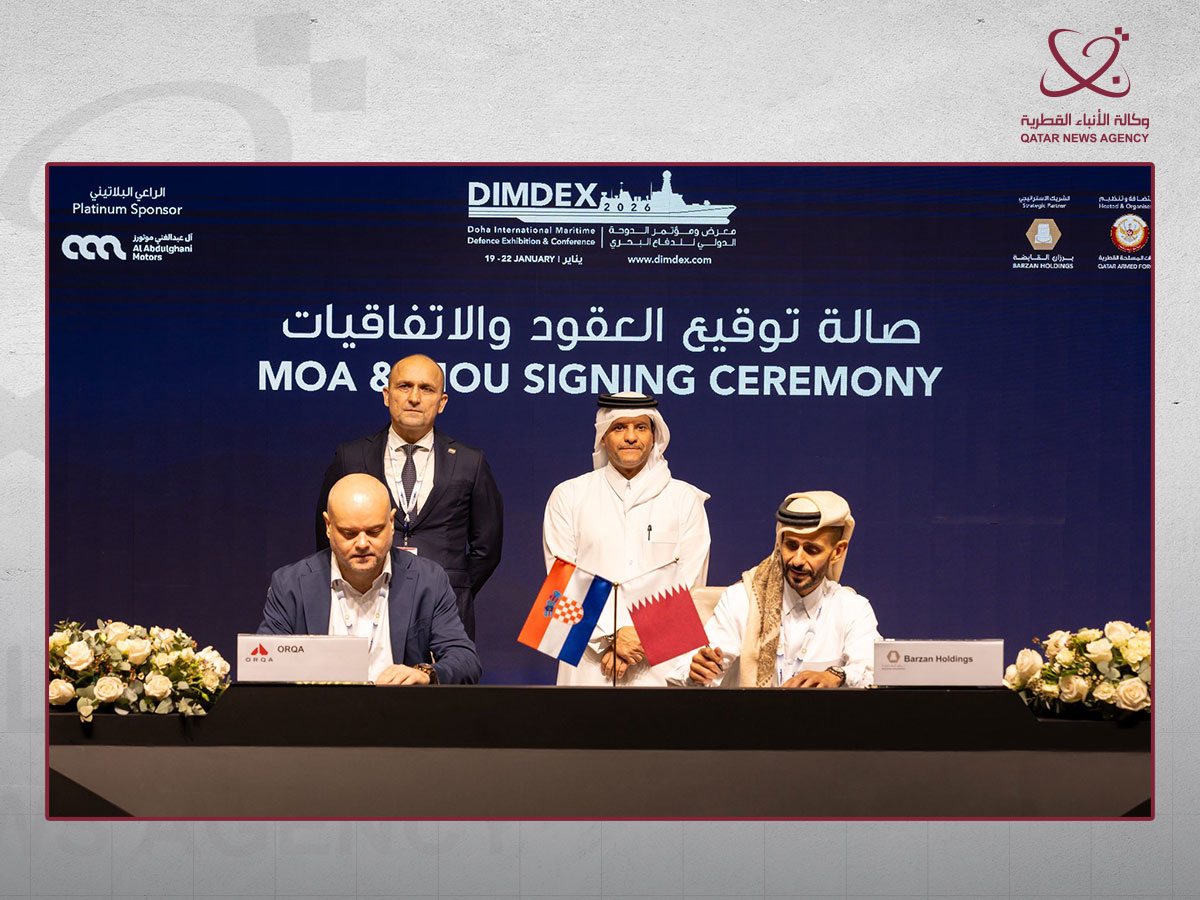 الدوحة في 19 يناير /قنا/ حضر سعادة الشيخ سعود بن عبدالرحمن بن حسن آل ثاني نائب رئيس مجلس الوزراء ووزير الدولة لشؤون الدفاع، توقيع عدد من الاتفاقيات، وذلك على هامش أعمال معرض ومؤتمر الدوحة الدولي للدفاع البحري ديمدكس 2026. وشملت توقيع اتفاقيات بين مجموعة برزان القابضة وكل من: شركة STM التركية، وشركة...