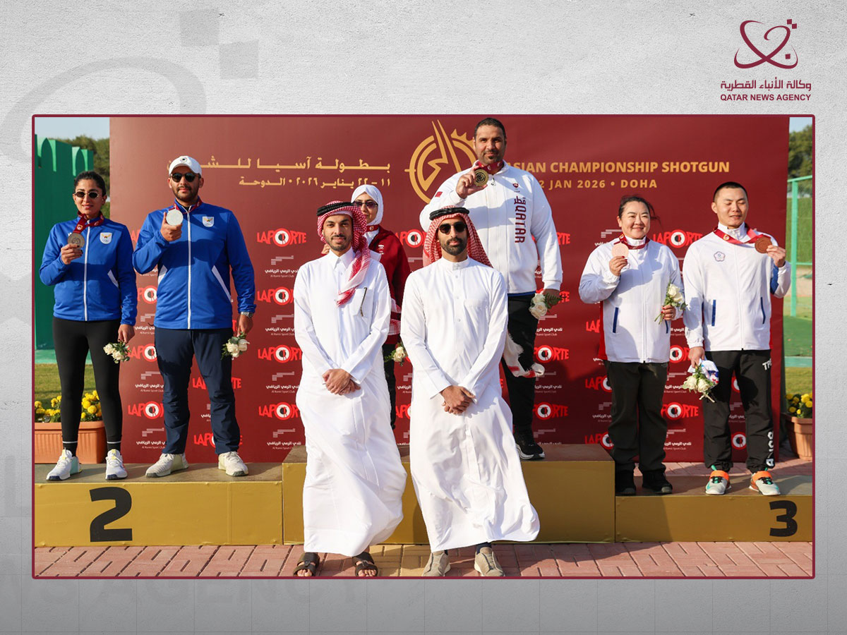 الدوحة في 21 يناير /قنا/ توج المنتخب القطري بالميدالية الذهبية لمسابقة التراب للفرق مختلط وحقق رقما قياسيا آسيويا وعالميا جديدا اليوم في ختام بطولة آسيا للشوزن الدوحة 2026 التي أقيمت على مجمع ميادين لوسيل للرماية طيلة 11 يوما، وسط مشاركة 196 راميا ورامية يمثلون 17 دولة تنافسوا في مسابقتي السكيت والت...