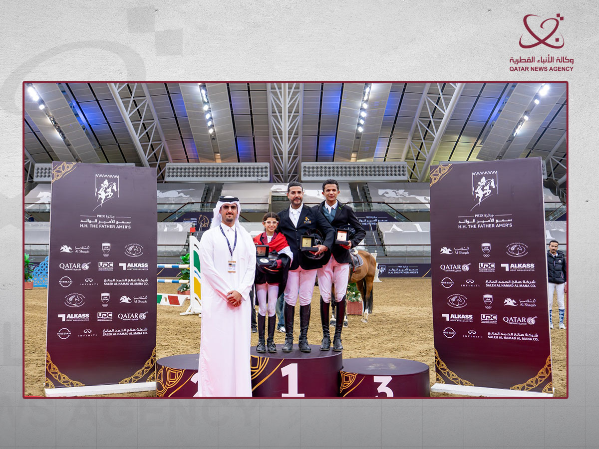 الدوحة في 03 يناير /قنا/ تواصلت اليوم السبت منافسات الجولة الأولى من بطولة جائزة سمو الأمير الوالد للفروسية بميداني لونجين الخارجي والداخلي في الشقب- عضو مؤسسة قطر. وأسفرت نتائج منافسات اليوم، عن تتويج الفارس المصري محمد الشناوي بشوط النجمتين على ارتفاع 135 سم، بتحقيقه زمنا قدره 65.44 ثانية على الج...