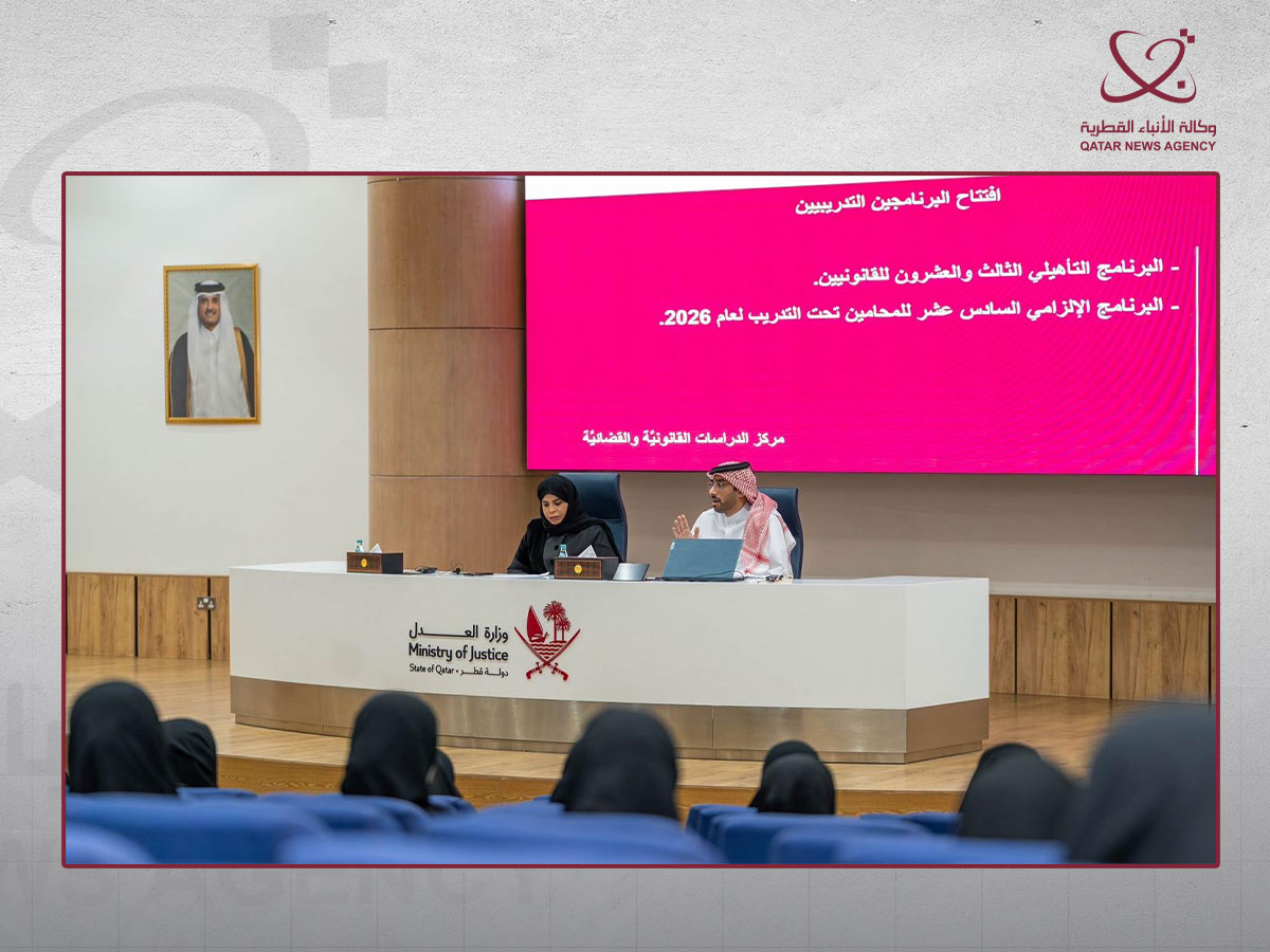 الدوحة في 03 يناير /قنا/ أعلن مركز الدراسات القانونية والقضائية بوزارة العدل، عن طرح خطة التدريب القانوني التخصصي للعام 2026، والتي تتضمن المسار العام للتطوير المستمر، وبرامج التدريب القانوني التخصصي لمختلف الفئات القانونية بالدولة. ويستهدف البرنامج مواكبة القانونيين للمستجدات التشريعية والقضائية و...