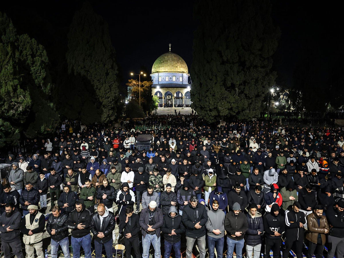 عشرات الآلاف يؤدون صلاتي العشاء والتراويح في المسجد الأقصى المبارك