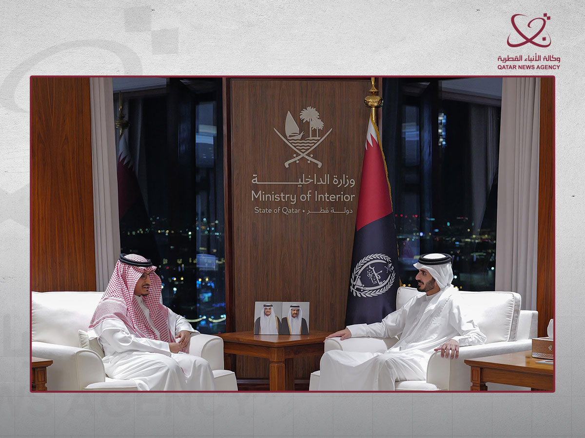 الدوحة في 24 فبراير /قنا/ استقبل سعادة الشيخ خليفة بن حمد بن خليفة آل ثاني، وزير الداخلية وقائد قوة الأمن الداخلي "لخويا"، صاحب السمو الملكي الأمير سعد بن منصور بن سعد بن سعود بن عبدالعزيز آل سعود سفير المملكة العربية السعودية الشقيقة لدى الدولة. وخلال المقابلة، تم استعراض مسارات التعاون بين البلدي...