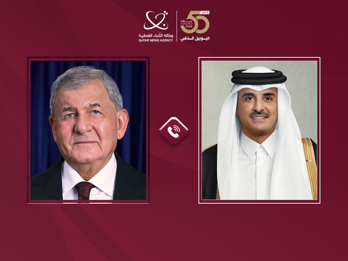 الدوحة في 01 مارس /قنا/ تلقى حضرة صاحب السمو الشيخ تميم بن حمد آل ثاني أمير البلاد المفدى، اتصالا هاتفيا اليوم، من أخيه فخامة الرئيس الدكتور عبداللطيف جمال رشيد رئيس جمهورية العراق الشقيقة. وأعرب فخامة الرئيس العراقي عن تضامن جمهورية العراق مع دولة قطر إثر العدوان الإيراني عليها، واطمئنانه على الأو...