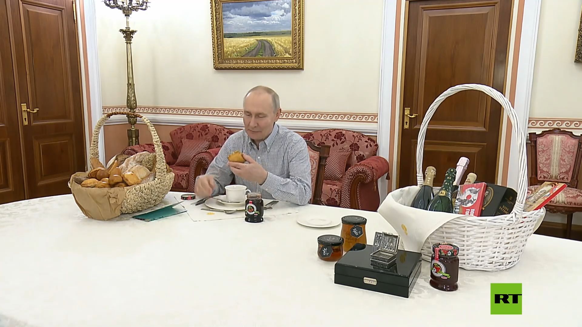 سؤال على الهواء يتحول إلى تبادل للهدايا بين بوتين ومالك مخبز