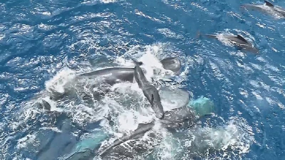 علماء يوثقون ولادة صغير لحوت العنبر وتعاون الحيتان في رعايته (فيديو)