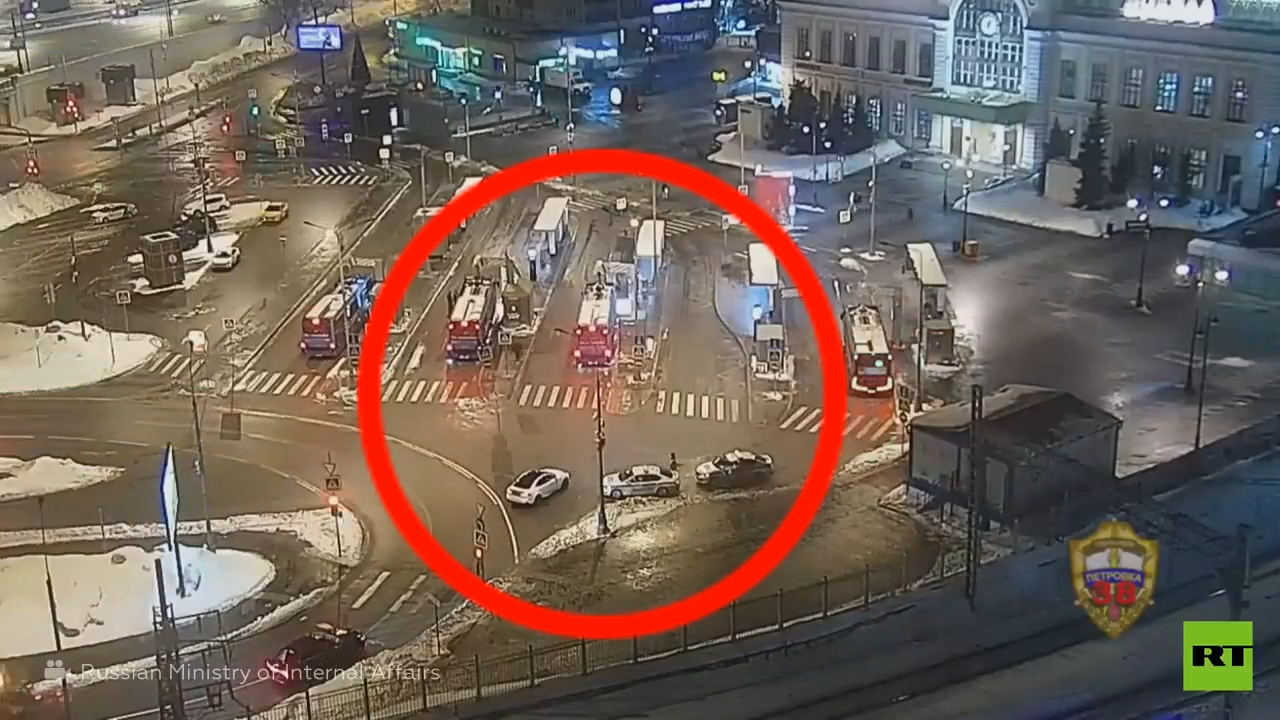 نشرت وزارة الشؤون الداخلية الروسية لقطات توثق لحظة انفجار عبوة ناسفة بالقرب من سيارة شرطة في ساحة محطة سافيولوفسكي بموسكو ليل الاثنين إلى الثلاثاء أدى إلى مصرع شرطي ومنفذ الانفجار....