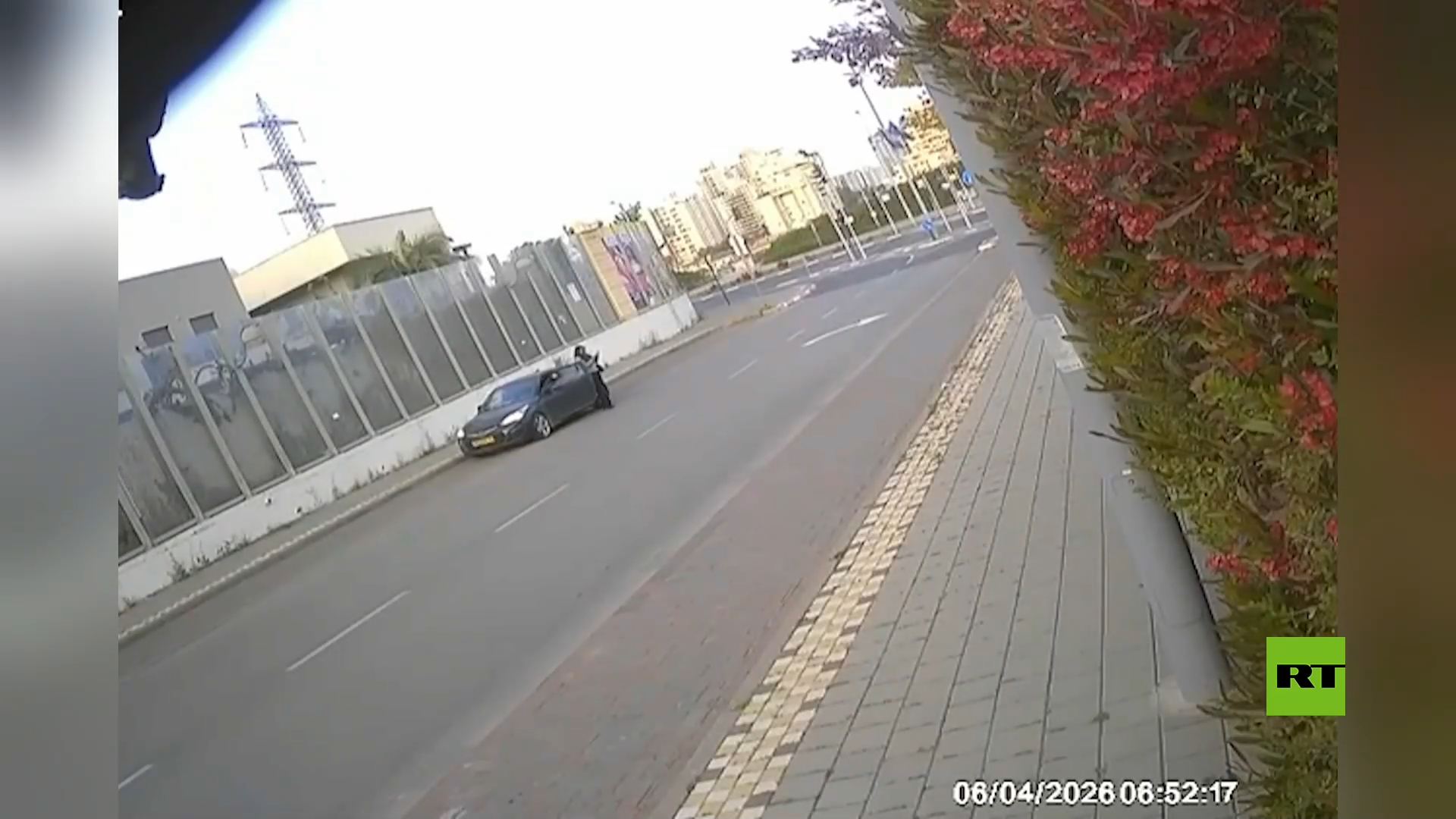 سجلت كاميرة المراقبة لحظة إصابة سيارة بشظايا صاروخ إيراني مُعترض قرب بتاح تكفا اليوم الاثنين مما أدى إلى تحطيم نوافذها وتناثر الحطام في الهواء بينما كانت المرأة تقف بالقرب منها....