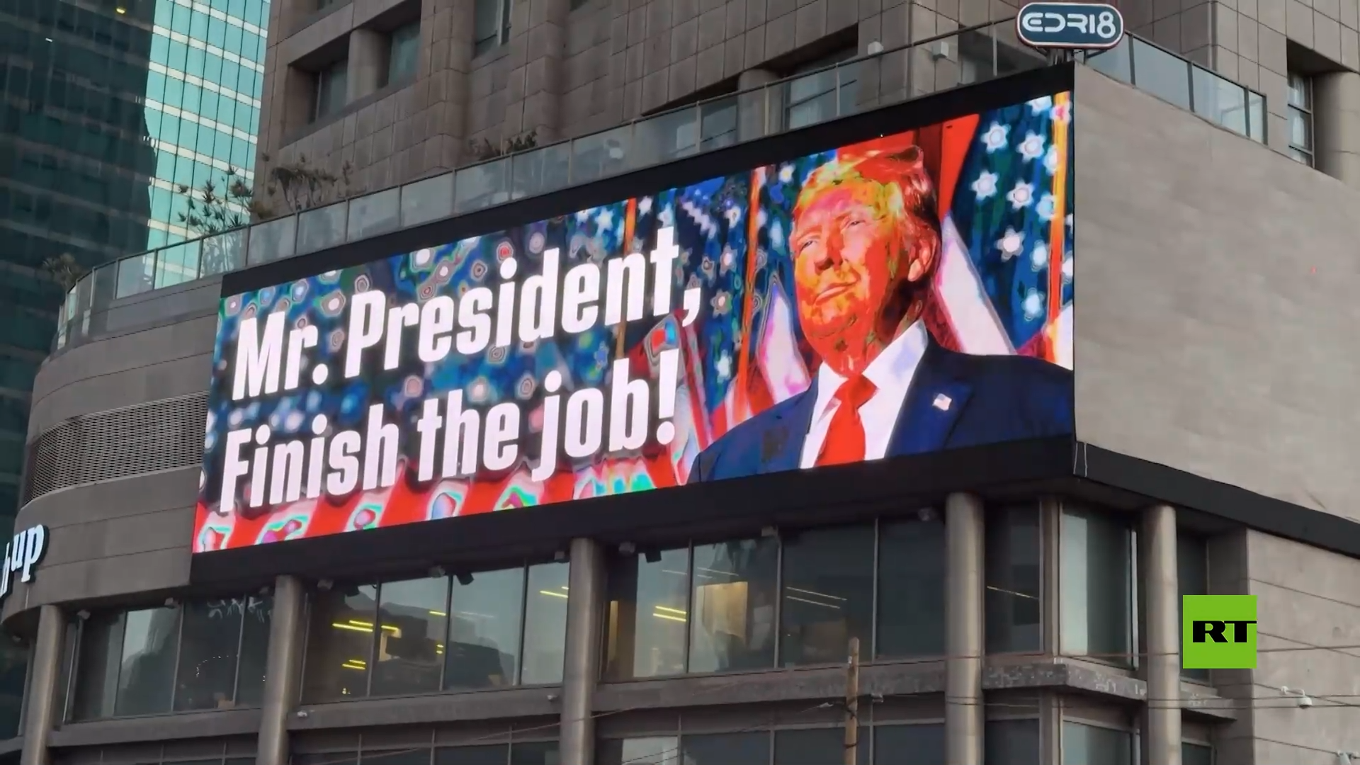قبل ساعات من انتهاء إنذاره الأخير لإيران.. لوحات إعلانية تعود للظهور في تل أبيب تدعو ترامب للتصرف