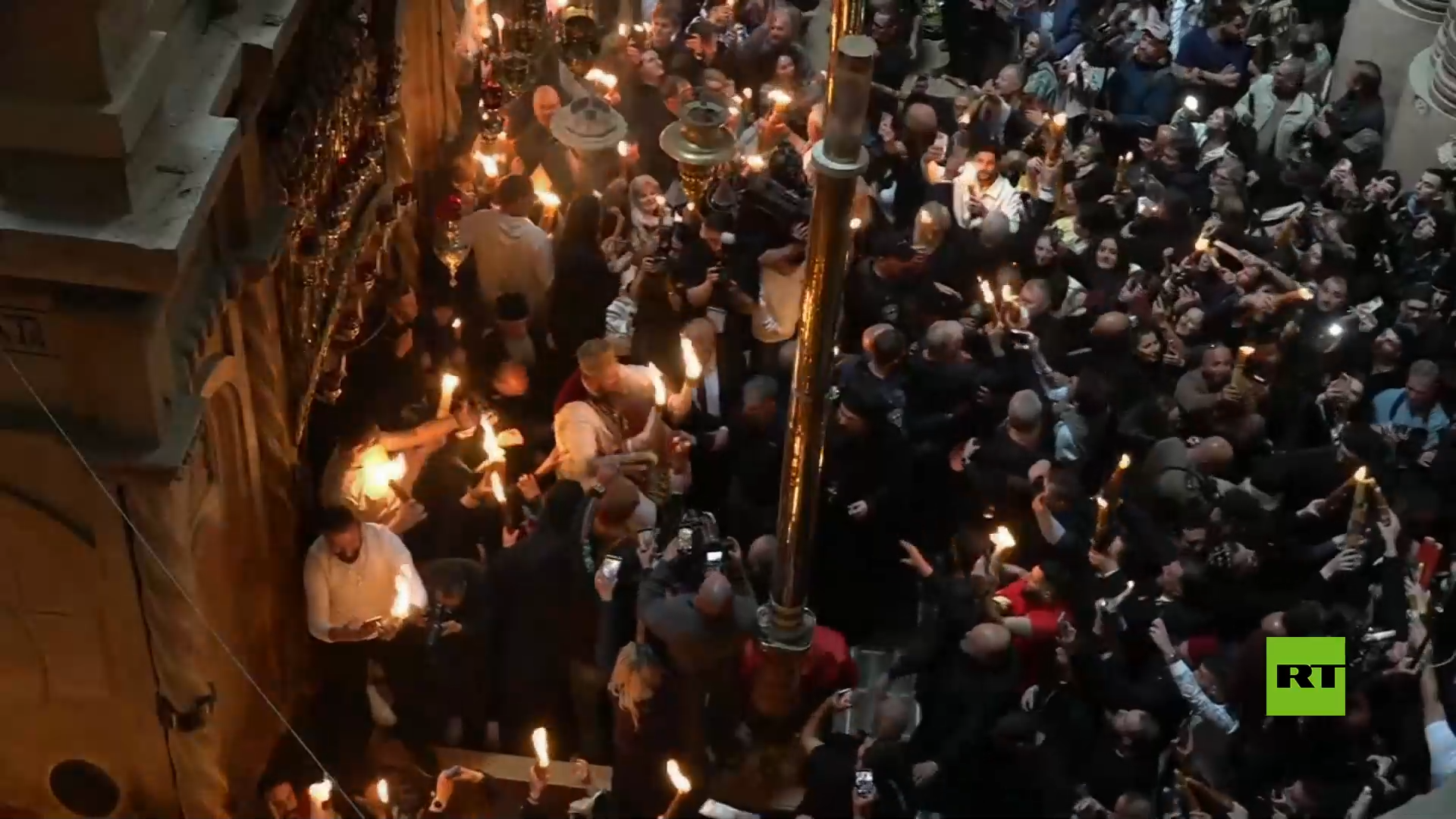 انبثق النور المقدس من قبر السيد المسيح في كنيسة القيامة بالقدس وسط حشد كبير من آلاف المسيحيين الأرثوذكس اليوم السبت....
