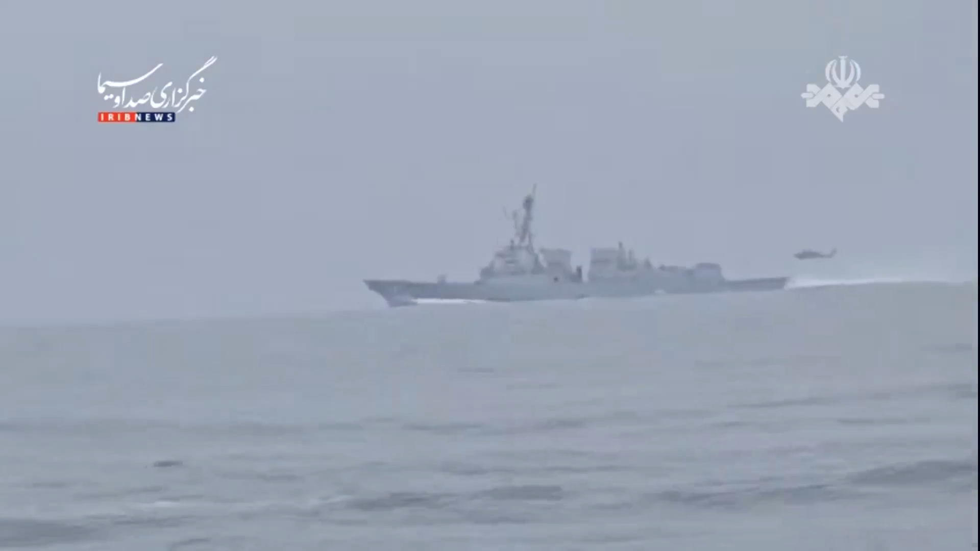 التلفزيون الإيراني ينشر لقطات لإبعاد مدمرتين أمريكيتين من مضيق هرمز