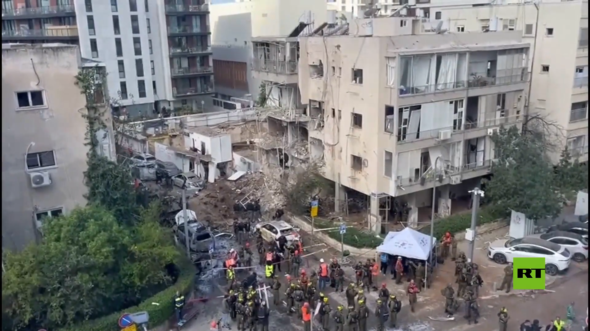 عمليات البحث وسط تل أبيب بعد تدمير حي سكني جراء قصف إيراني