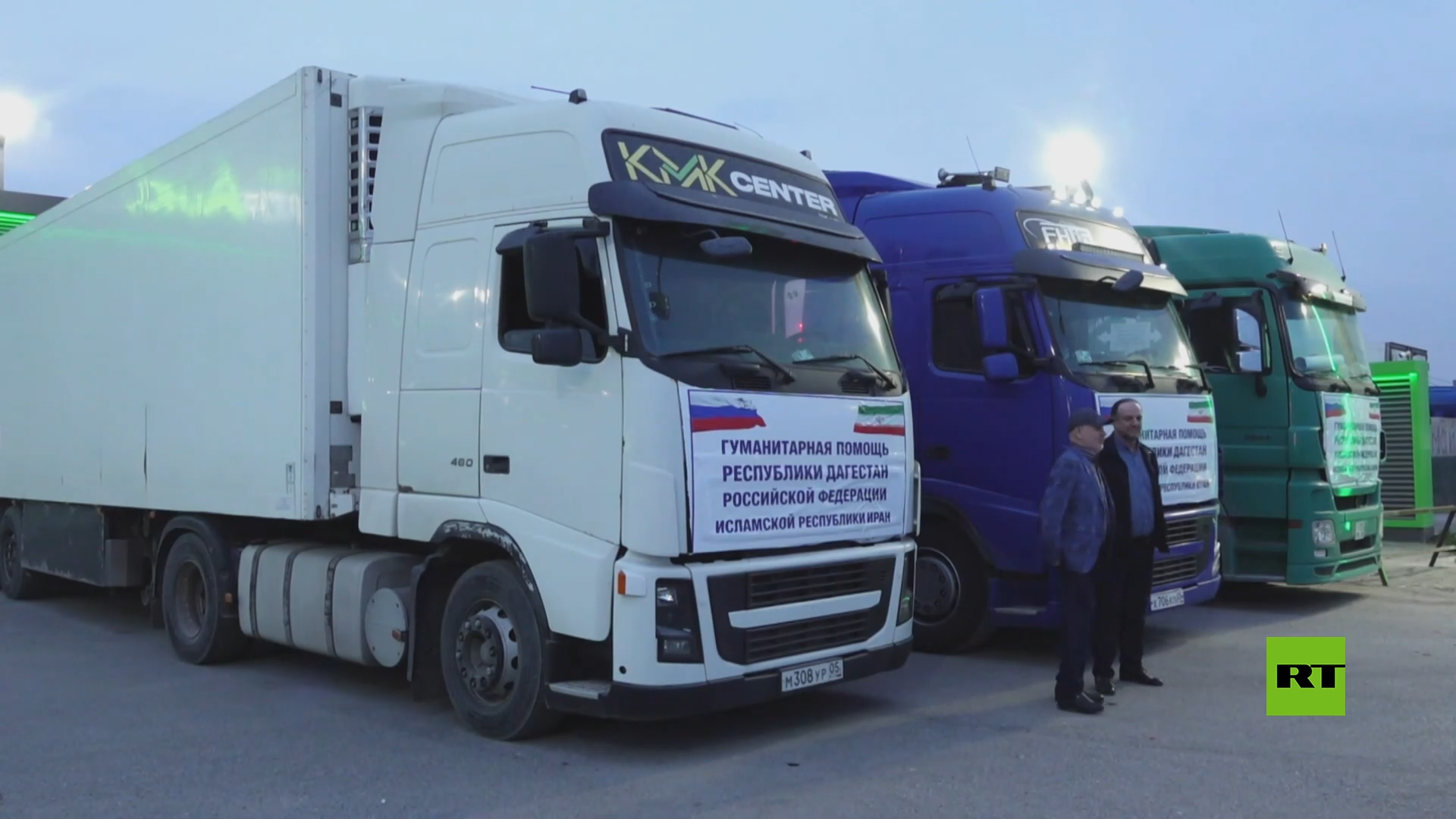 قافلة من 7 شاحنات تحمل 150 طنا من المساعدات تنطلق من داغستان إلى إيران