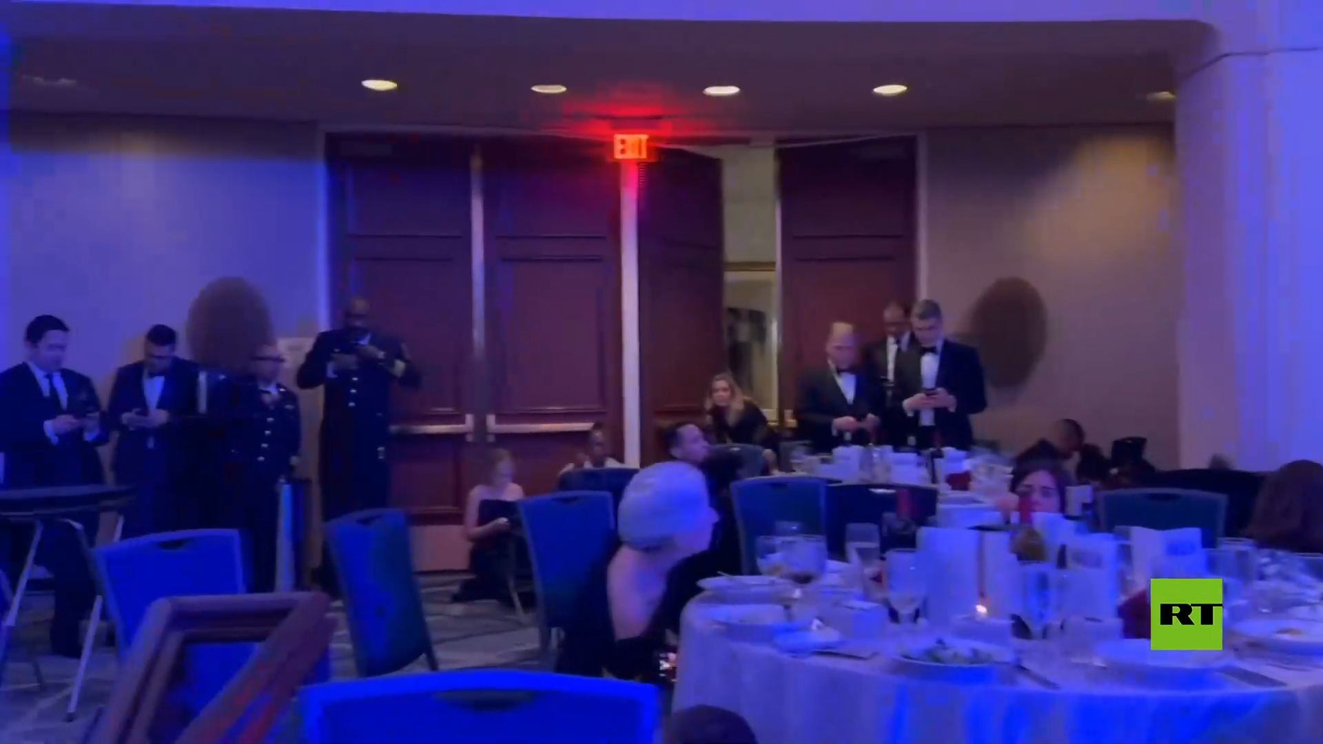 شاهد.. مئات الضيوف يحتمون تحت الطاولات أثناء إطلاق النار في "عشاء ترامب"