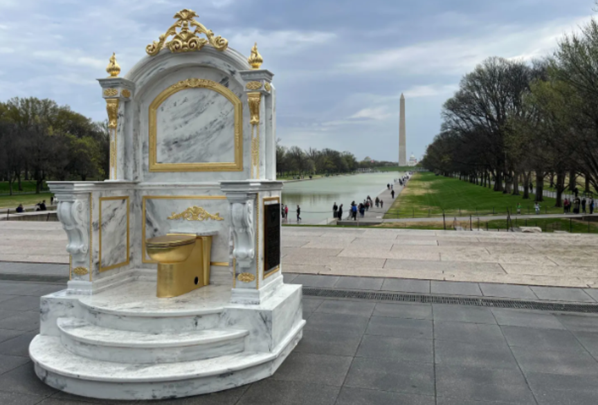 مرحاض "ذهبي" في واشنطن.. عمل فني ساخر ينتقد ترامب