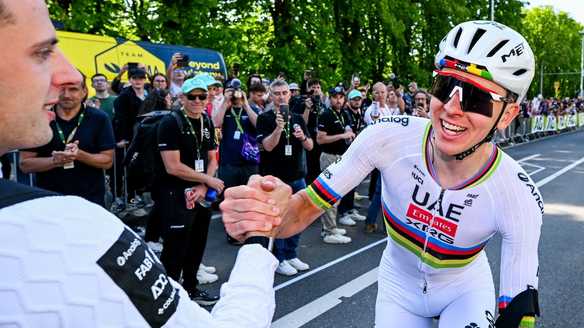 "Au début, je suivais juste les roues avant de me rendre compte que le peloton était scindé en deux, explique Tadej Pogacar au micro de Laurent Bruwier. Nous avons finalement laissé un peu de marge car un si gros groupe ne collabore jamais. Nous avons gardé ça sous contrôle car Remco Evenepoel pouva...