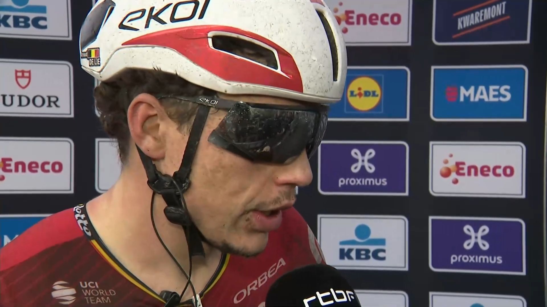 "Il y a eu un tournant", a expliqué Arnaud De Lie au micro de Jérôme Helguers. Comme l'a précisé le Belge, la course a basculé en sa défaveur à 18 kilomètres de l’arrivée, juste avant le Mur de Grammont. "J’étais entre la 10e et la 15e place lorsqu'une chute s'est produite. Le coureur a côté de moi...