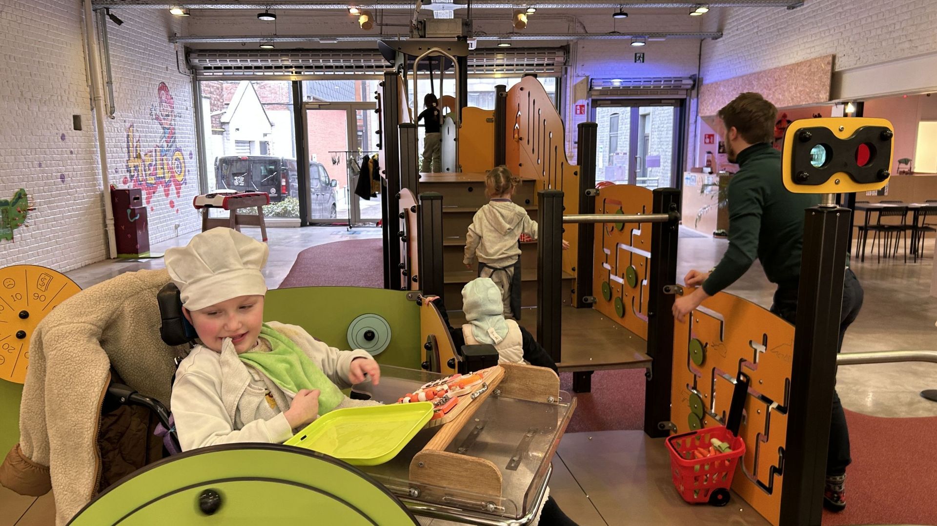 Dans la salle, Michaël installe la chaise roulante de son fils Clément dans une balançoire spécialement adaptée. "Il faut quand même un peu de force pour le monter dessus parce qu’il y a une petite rampe. Vous mettez le frein, la petite sécurité, puis vous balancez l’enfant", détaille le papa. Cléme...