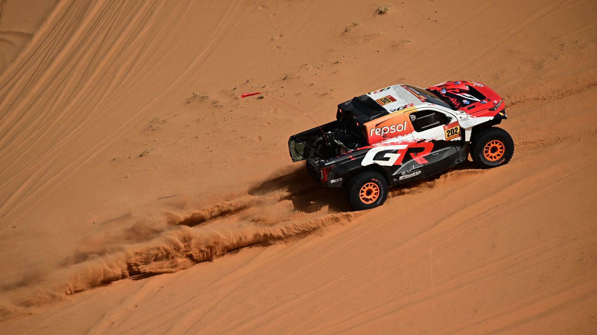 Le pilote Dacia et son copilote ont bien cru voir Henk Lategan (Toyota) venir les déloger de la première place. Parti pour réussir le doublé étape et classement général, le Sud-Africain a connu une fin de spéciale compliquée avec un dégât sur sa voiture. Au général, le pilote qatari conserve 4:47 mi...