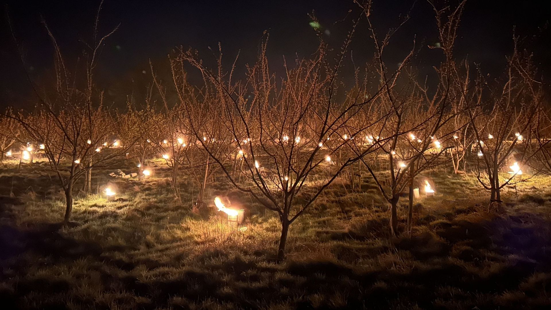 Des bougies pour casser le froid et sauver les arbres fruitiers du gel, un spectacle nocturne fascinant