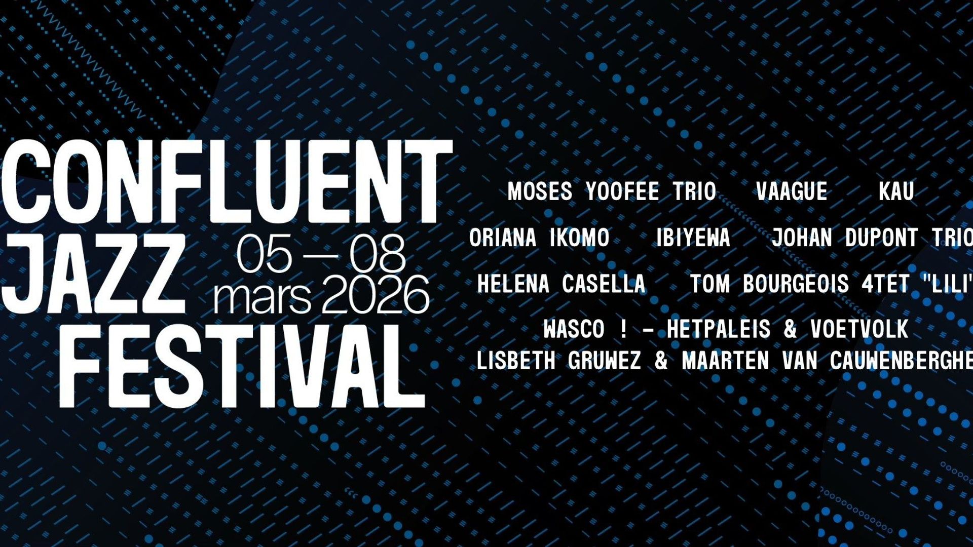 Du 05 au 08 mars 2026 le Delta vous accueille pour la neuvième édition du Confluent Jazz Festival. Quatre jours de découvertes. Quatre jours pour célébrer le jazz sous toutes ses formes. Jam t'invite aux concerts de Kau, Oriana Ikomo, Moses Yoofee Trio et Helena Casella. KAU est un trio instrumenta...