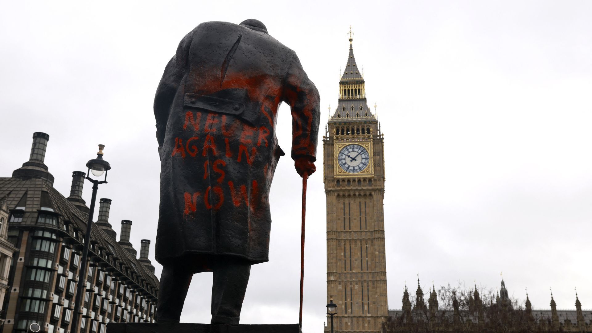 Londres : la statue de Churchill taguée, un activiste néerlandais revendique l’acte