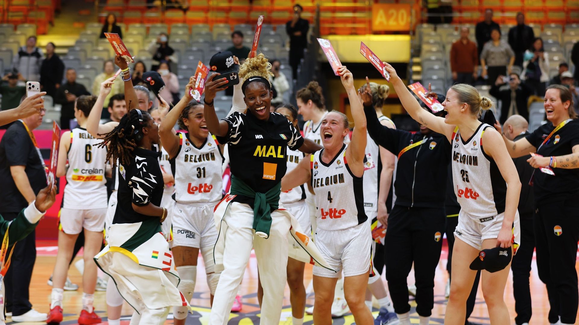 Qualifiées pour le Mondial de basket grâce aux Cats, les Maliennes les rejoignent sur le parquet pour célébrer