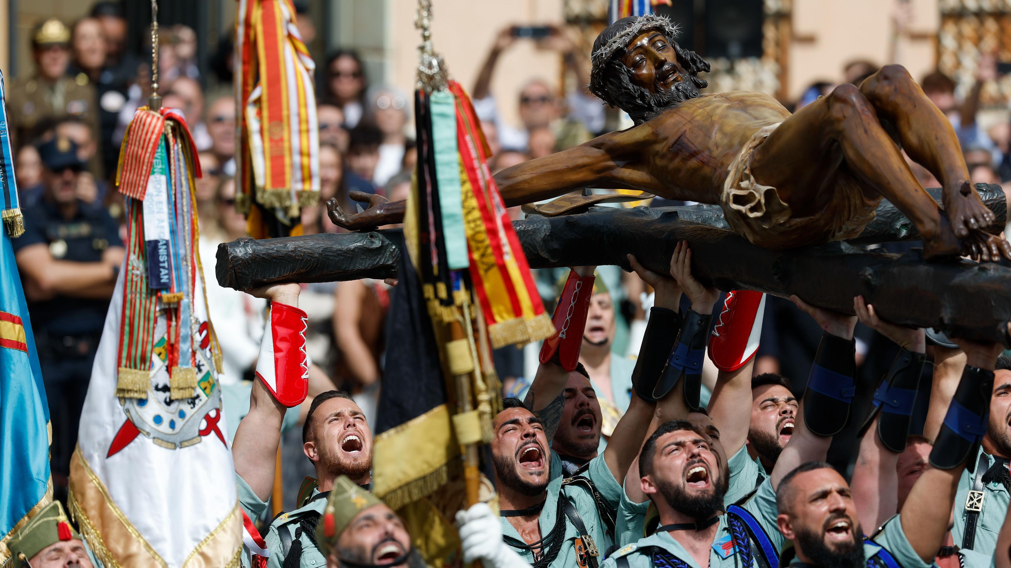 Sigue en directo el desembarco de la legión y el traslado del Cristo de Mena Los caballeros y damas legionarios inician su recorrido en la Plaza de la Marina...