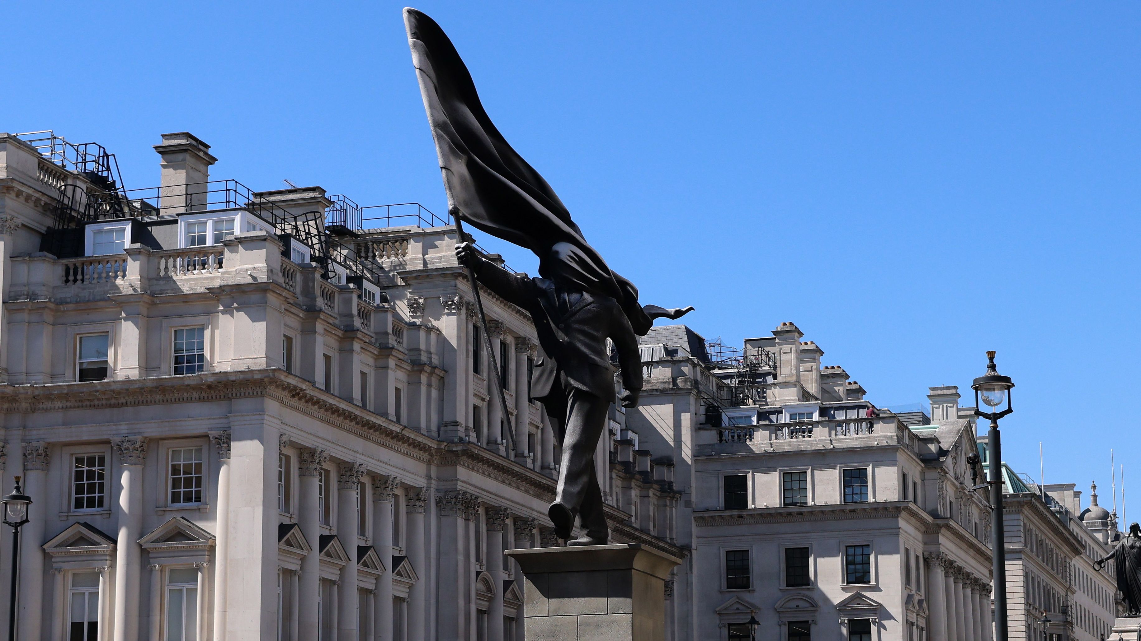 Banksy coloca una estatua de un hombre con una bandera en el centro de Londres