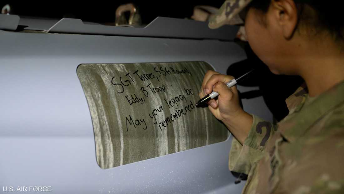 نشرت وزارة الدفاع الأميركية صورة لجندي يكتب رسالة على قذيفة، قبل إطلاقها في القصف الذي قالت إنه استهدف عشرات الأهداف لتنظيم "داعش" في سوريا....