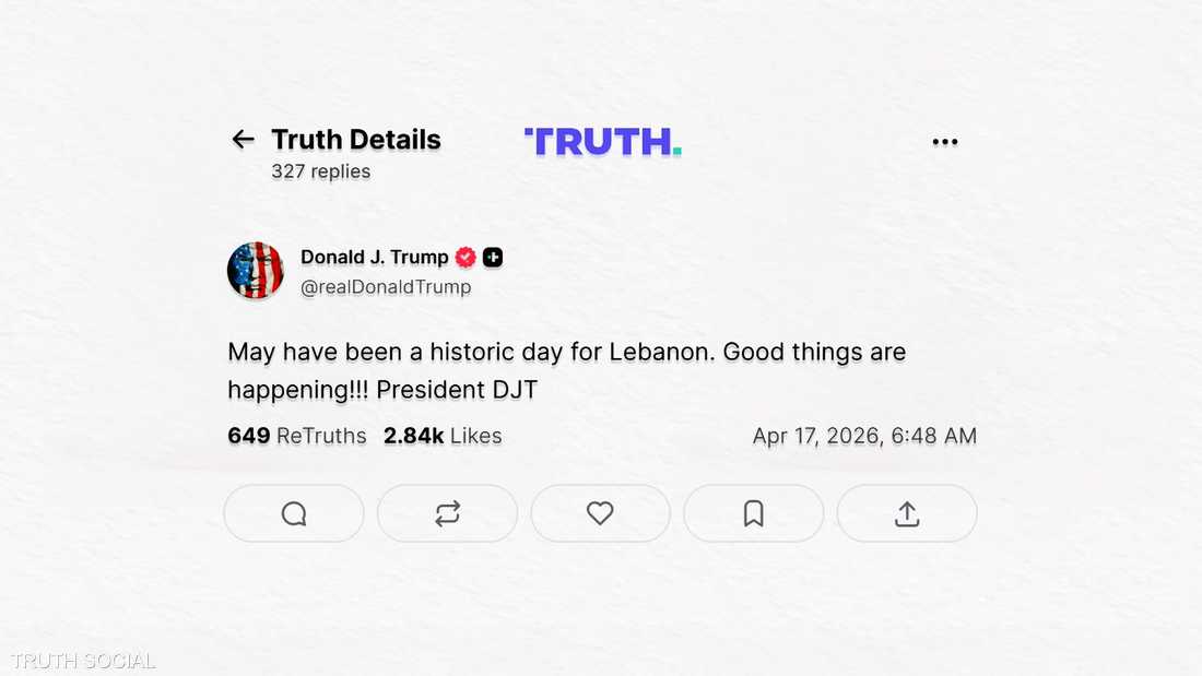 قال الرئيس الأميركي دونالد ترامب عن الهدنة في لبنان "قد يكون يوما تاريخيا للبنان"، وذلك بعد أن كان قد عبر عن أمله في أن يتصرف حزب الله "بشكل لائق وحسن" خلال فترة الهدنة التي دخلت حيز التنفيذ وتستمر لمدة 10 أيام....